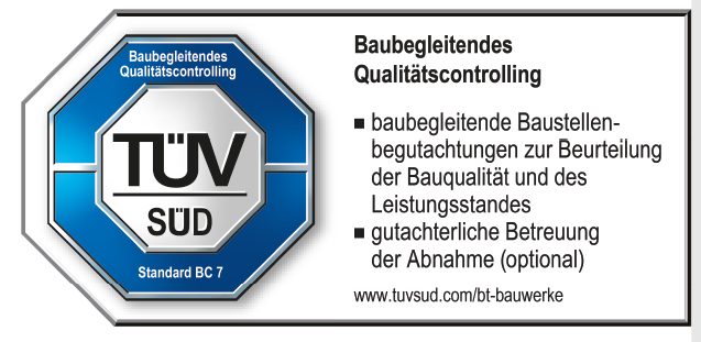 Der gesamte Bau von Planung, über Ausführung bis zum Baufortschritt sind durch TÜV-zertifizierte Dokumente festgehalten! Für Sie als Kapitalanleger bedeutet das: